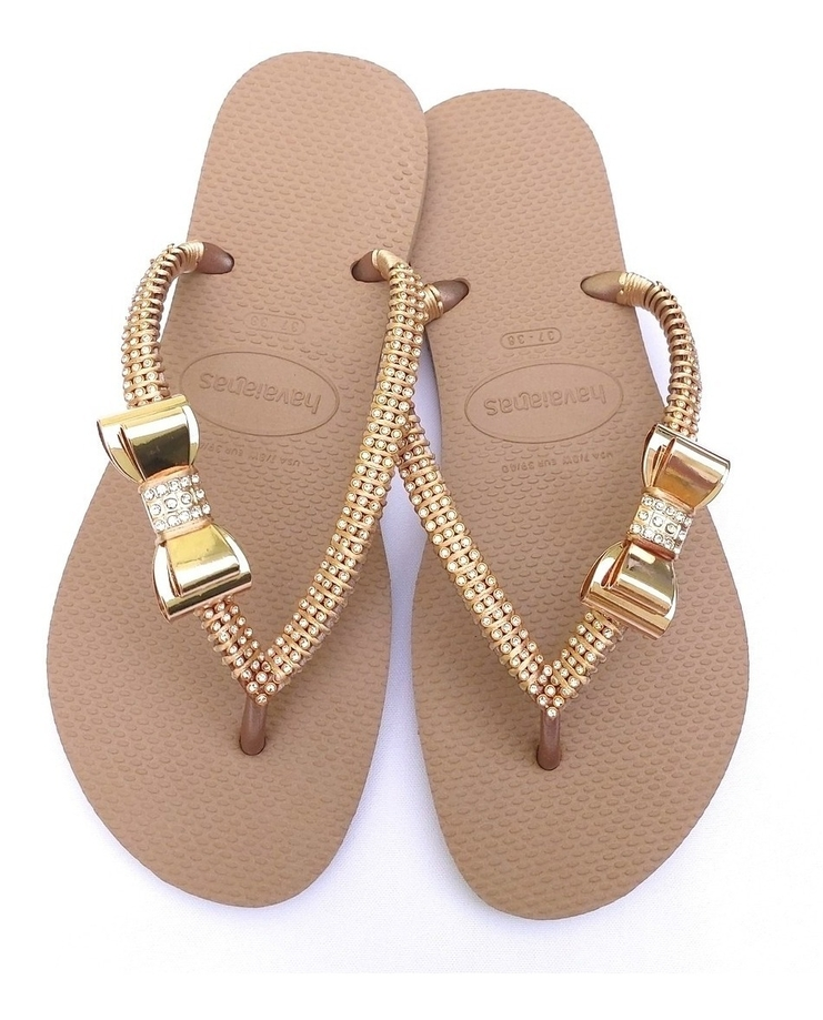 Chinelos Havaianas slim original ! decoradas com laço de metal,