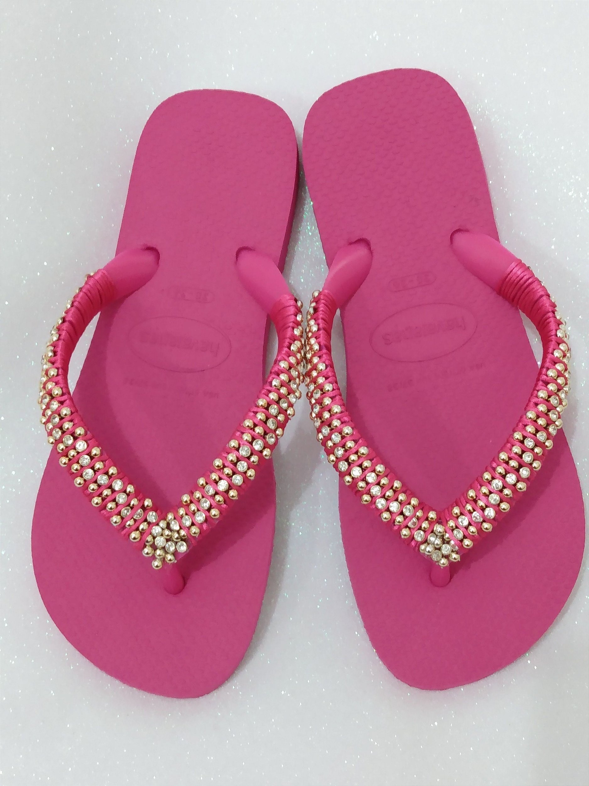 Chinelos havaianas original enfeitados com carinho e delicadeza para seus pés. Produtos conferidos e aprovados. A garantia fica por responsabilidade do cliente por ser um produto artesanal e delicados.